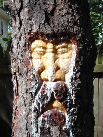 This was my only attempt at live tree carving. The tree is a pine and the sap is still flowing,